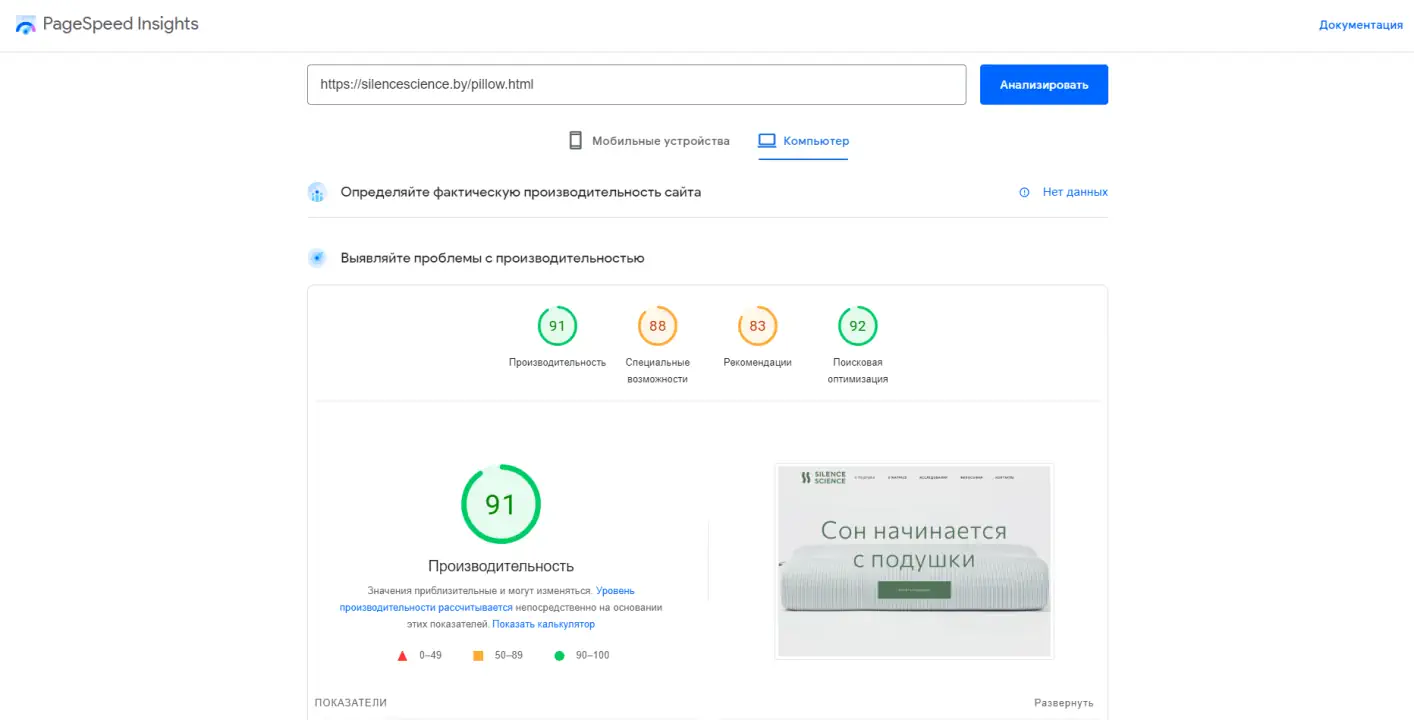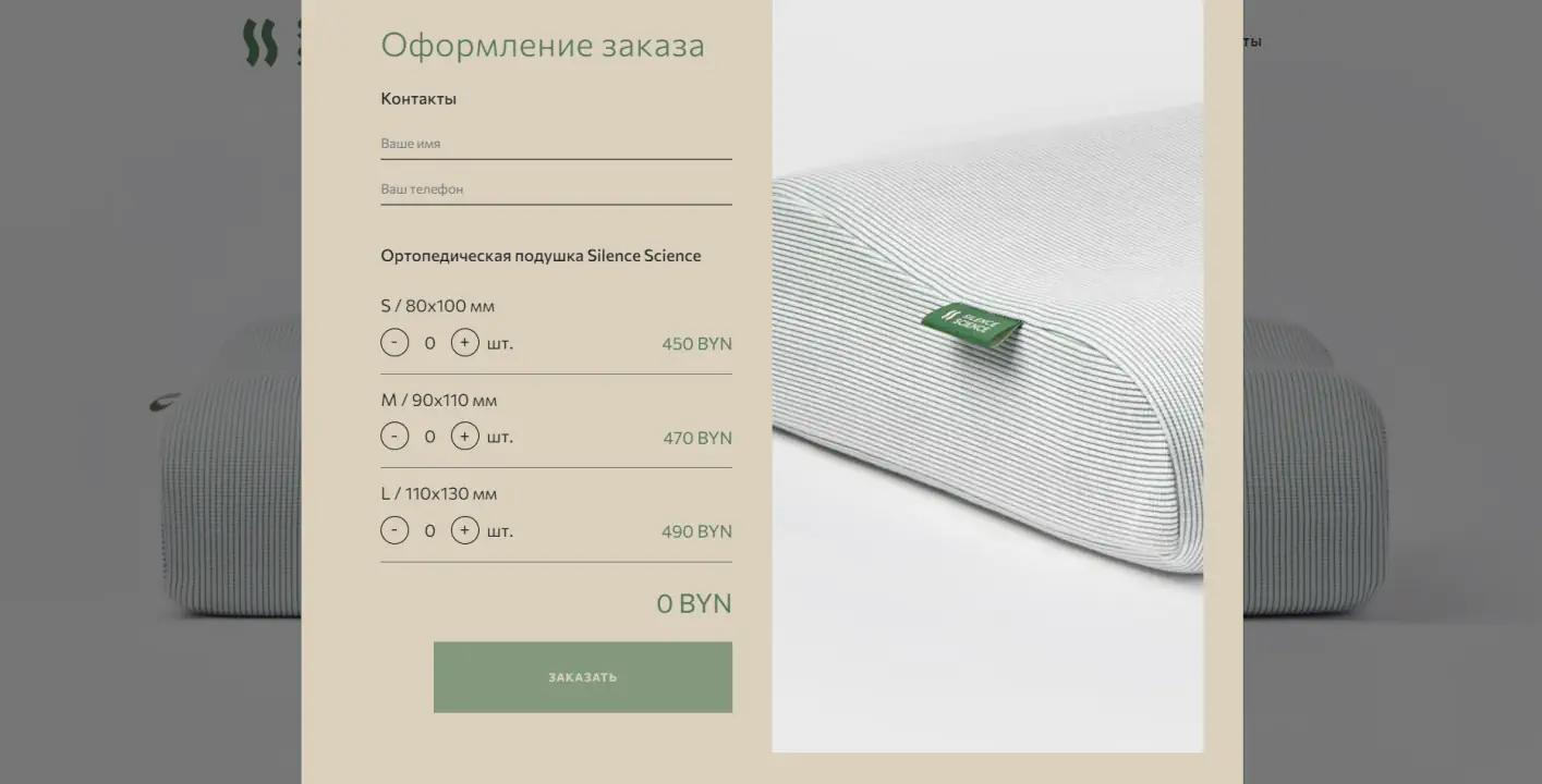 Разработка монобрендового сайта по продаже ортопедических матрасов и подушек