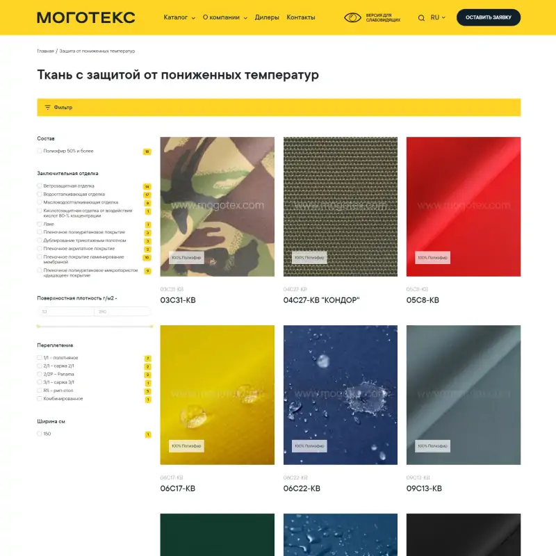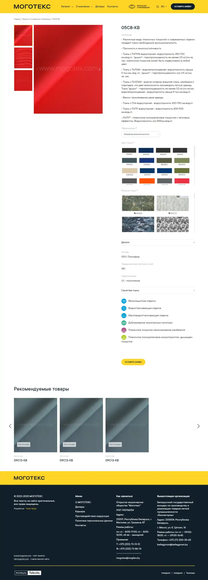 Согласно технического задания, вместо функционала кнопки купить и функционала корзины реализована всплавющая форма заявки по клику на кнопку "Оставить заявку". При отправке формы так же учитываються параметры товара которые выбрал пользователь, некоторые параметры имеют статус обязательных, без которых форма не будет срабатывать на отправку данных. Так же в карточке товара реализованы выпадющие списки доп. опциями.
